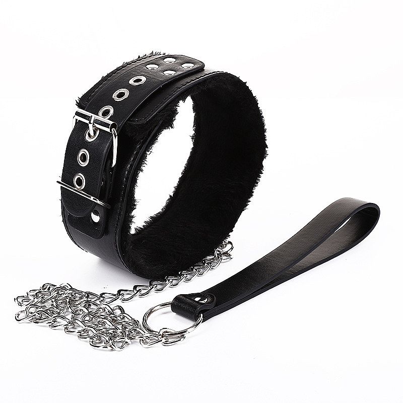 Coleira com pelúcia com regulagem e cordão removível, resistente.