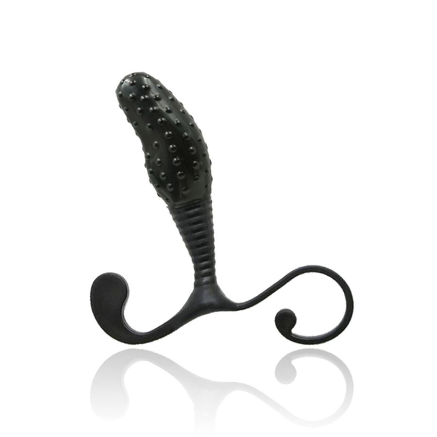 Massageador de próstata simples, com nódulos massageadores e alça de apoio para auxiliar melhor a penetração, possui também estimulador perineal para a estimulação da região próxima ao ânus.