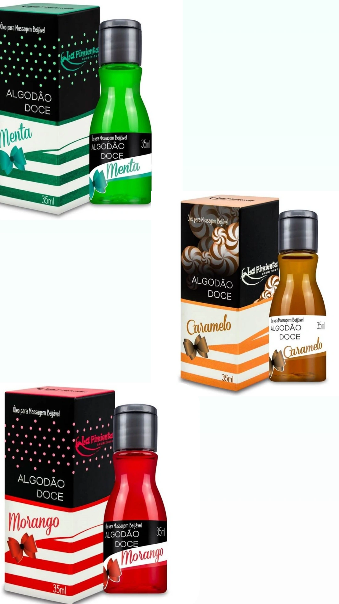 Algodão Doce é um óleo muito saboroso com um atraente sabor, com o fragrância de morango, caramelo e menta Hot fabricado com a mais alta qualidade, usado como óleo beijável, lubrificante e excitante, indicado para massagem corporal, sexo oral, anal e vaginal. Com a ação Hot (esquenta) após entrar em contato com a pele, basta dar um pequeno assopro que sentirá uma maravilhosa sensação de esquentar a pele.